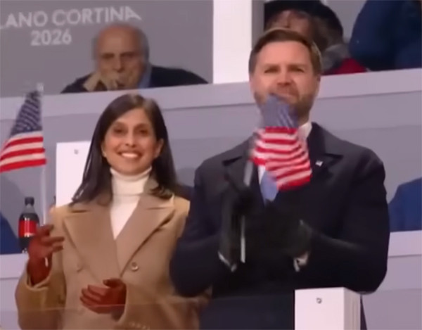 万斯夫妇在米兰-科尔蒂纳冬奥会开幕式上遭“嘘”。 视频截图